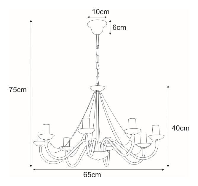 Dodatkowym atutem tego żyrandola jest fakt, że posiada on możliwość skrócenia wysokości. W tym celu wystarczy wypiąć poszczególne ogniwa i wciągnąć przewód pod podsufitkę. Takie rozwiązanie pozwala na zawieszenie tego modelu zarówno w wysokich, jak i niższych pomieszczeniach.