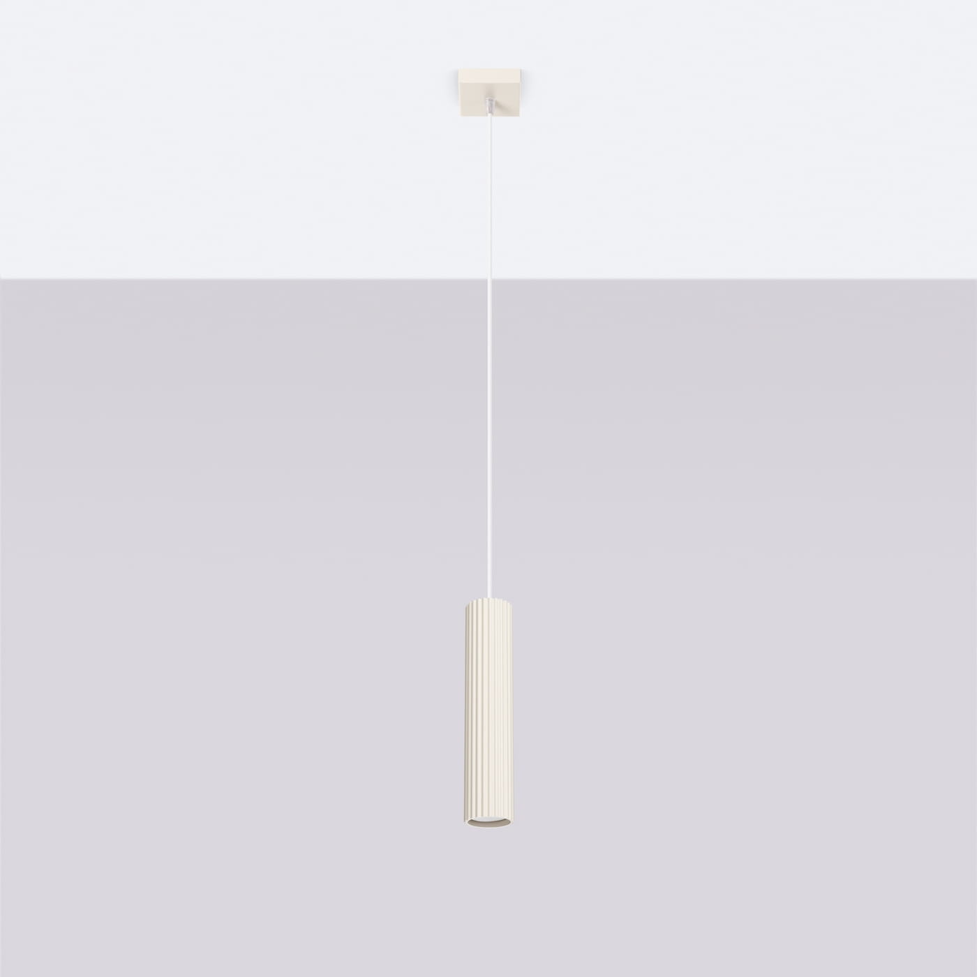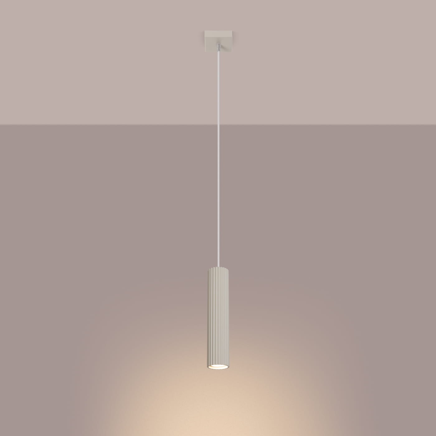 Lampa wisząca KARBON 1 beżowa – pojedyncza lampa sufitowa w beżowym kolorze do salonu i jadalni