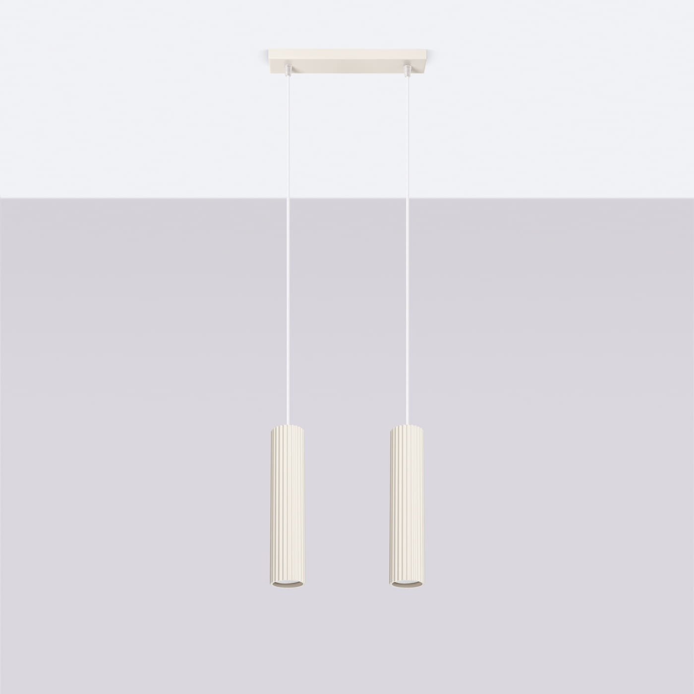 Lampa wisząca KARBON 2 beżowa – podwójna lampa sufitowa w beżowym kolorze do salonu i jadalni