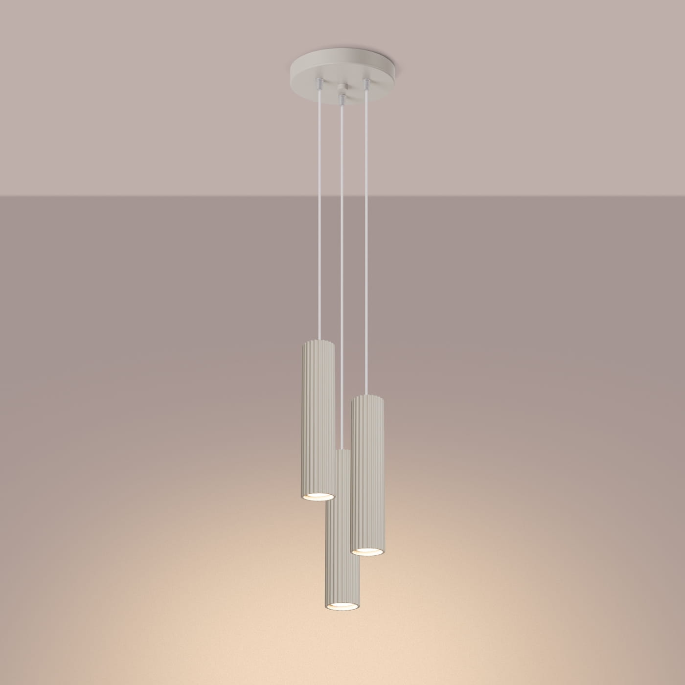 Lampa wisząca KARBON 3P beżowa – potrójna lampa sufitowa punktowa w beżowym kolorze do salonu i jadalni