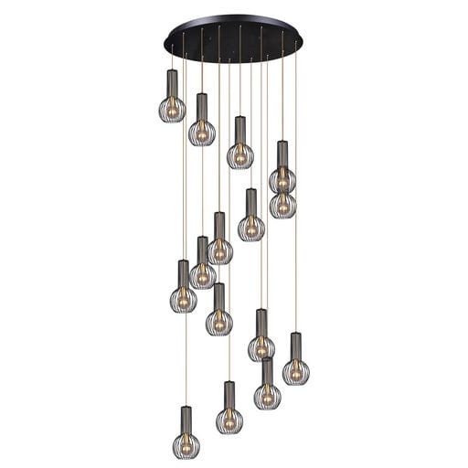 Oryginalne klosze o otwartej budowie zwisają z okrągłego mocowania naśladując spiralę. Długość każdej z linek można również regulować według własnych upodobań.